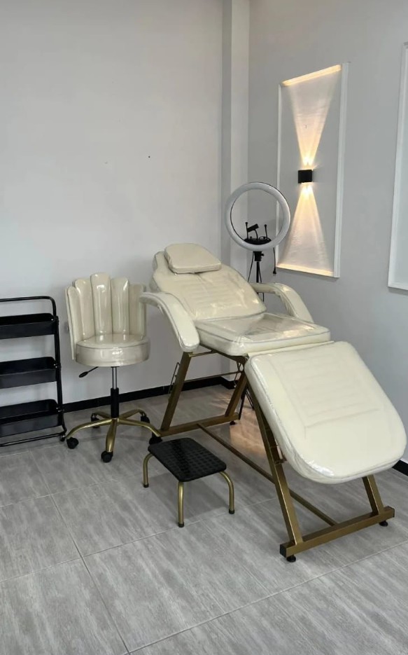 - Camilla dermofacial de lujo: Diseñada para ofrecer máximo confort al cliente y ergonomía al profesional. Su estructura sólida y acabados de alta calidad elevan la imagen de tu espacio.
